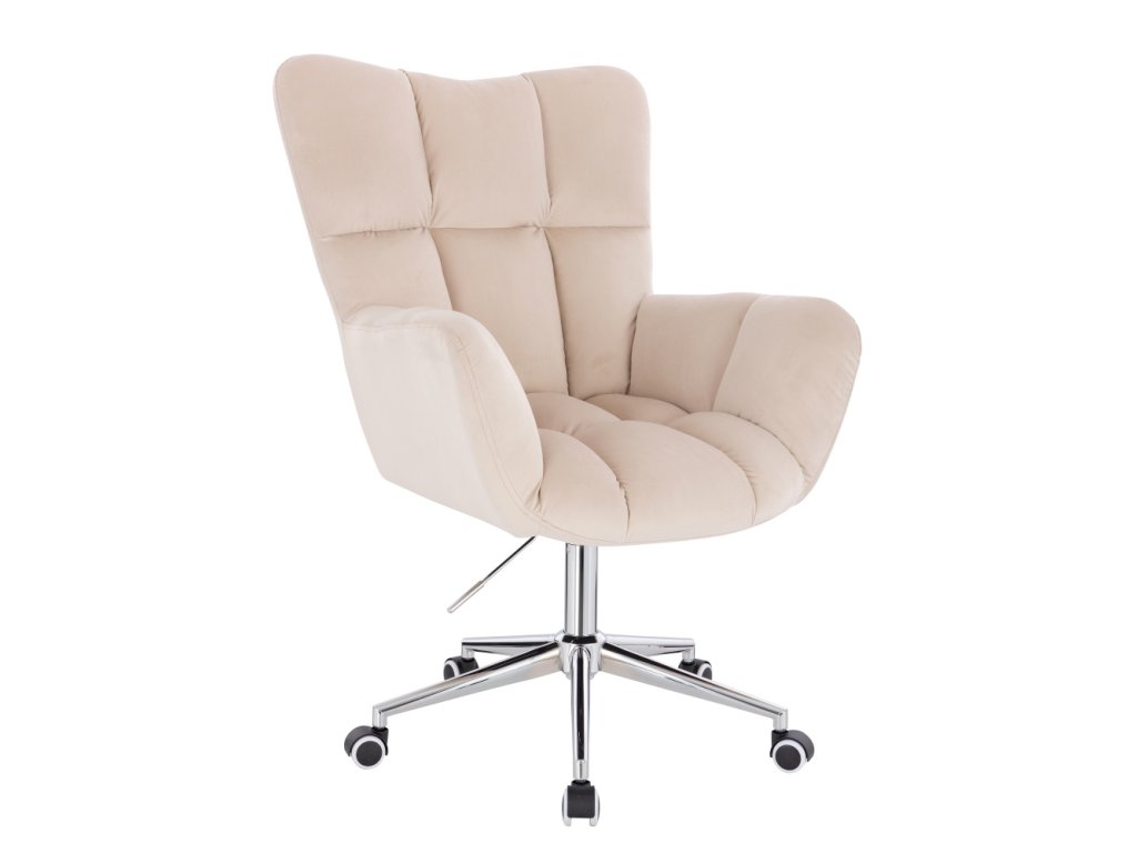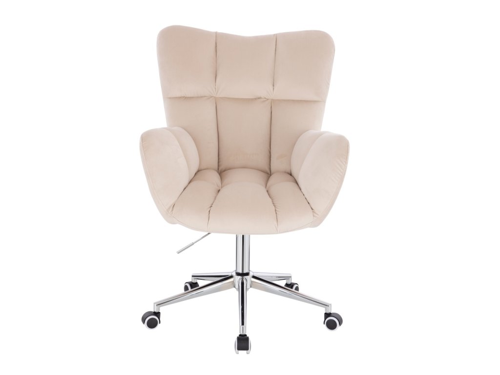 Křeslo AURORA VELUR na stříbrné podstavě s kolečky - krémové