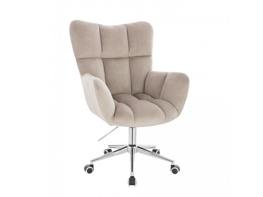 Křeslo AURORA VELUR na stříbrné podstavě s kolečky - latte