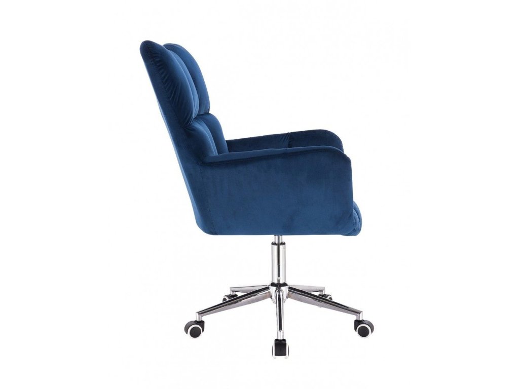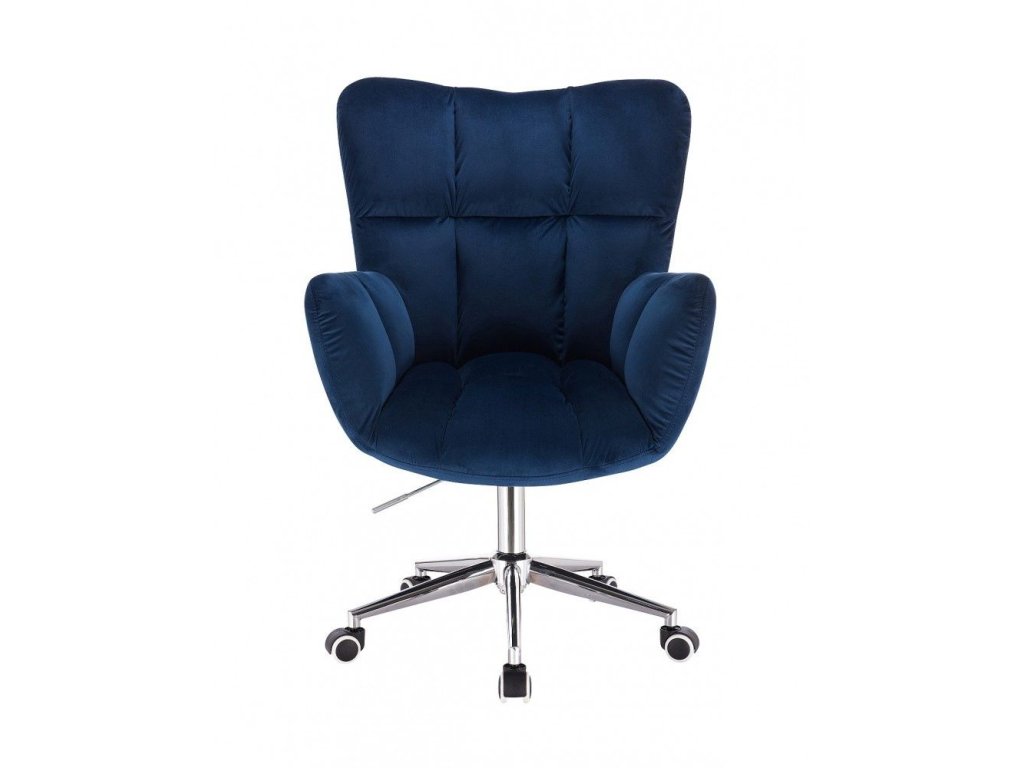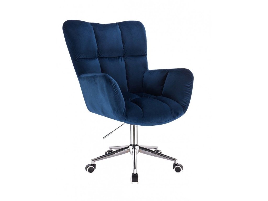 Křeslo AURORA VELUR na stříbrné podstavě s kolečky - modré