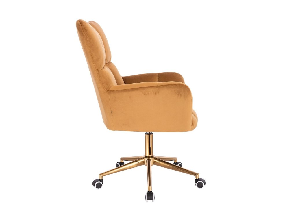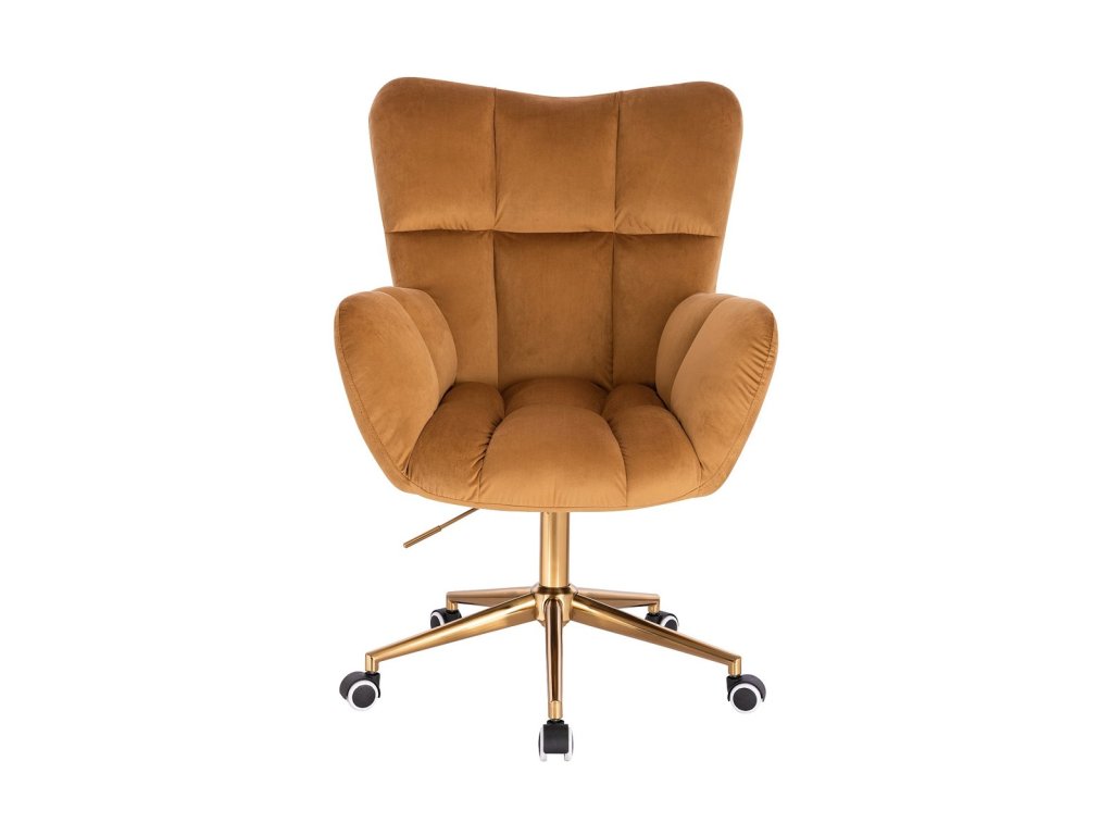 Křeslo AURORA VELUR na zlaté podstavě s kolečky - medové