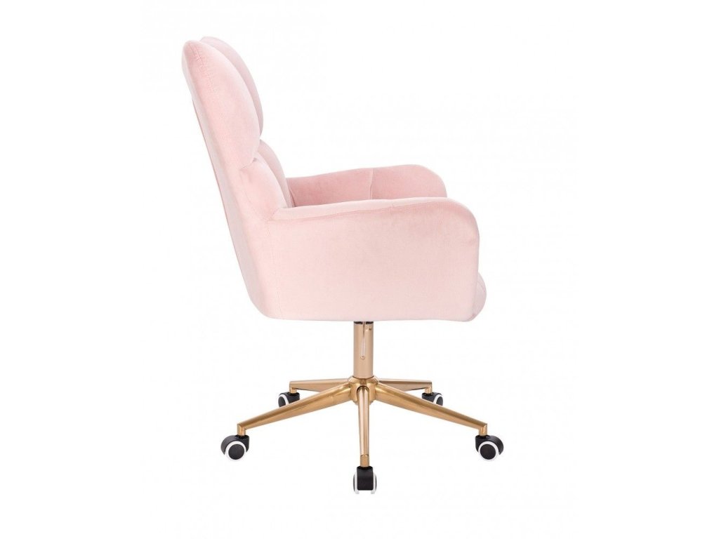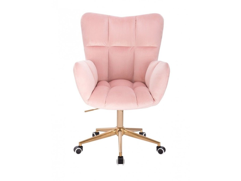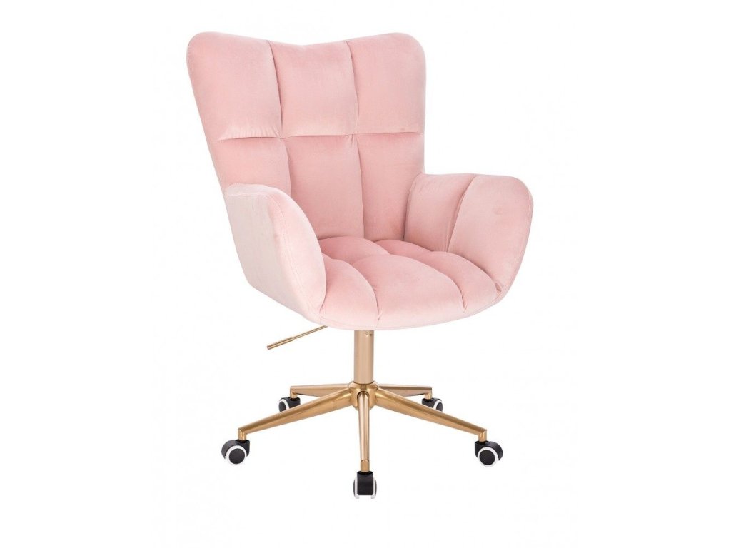 Křeslo AURORA VELUR na zlaté podstavě s kolečky - světle růžové