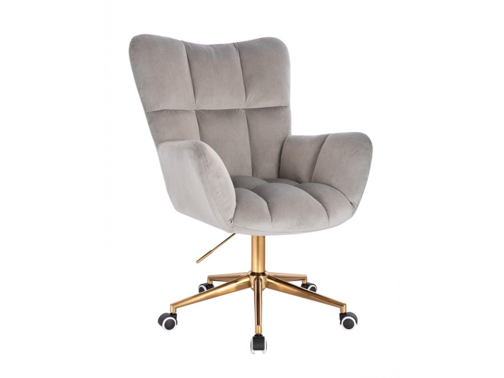 Křeslo AURORA VELUR na zlaté podstavě s kolečky - světle šedé