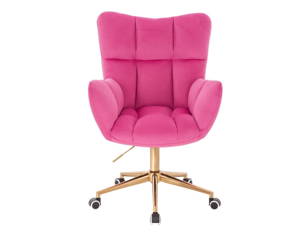 Křeslo AURORA VELUR na zlaté podstavě s kolečky - tmavě růžové