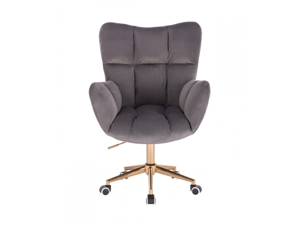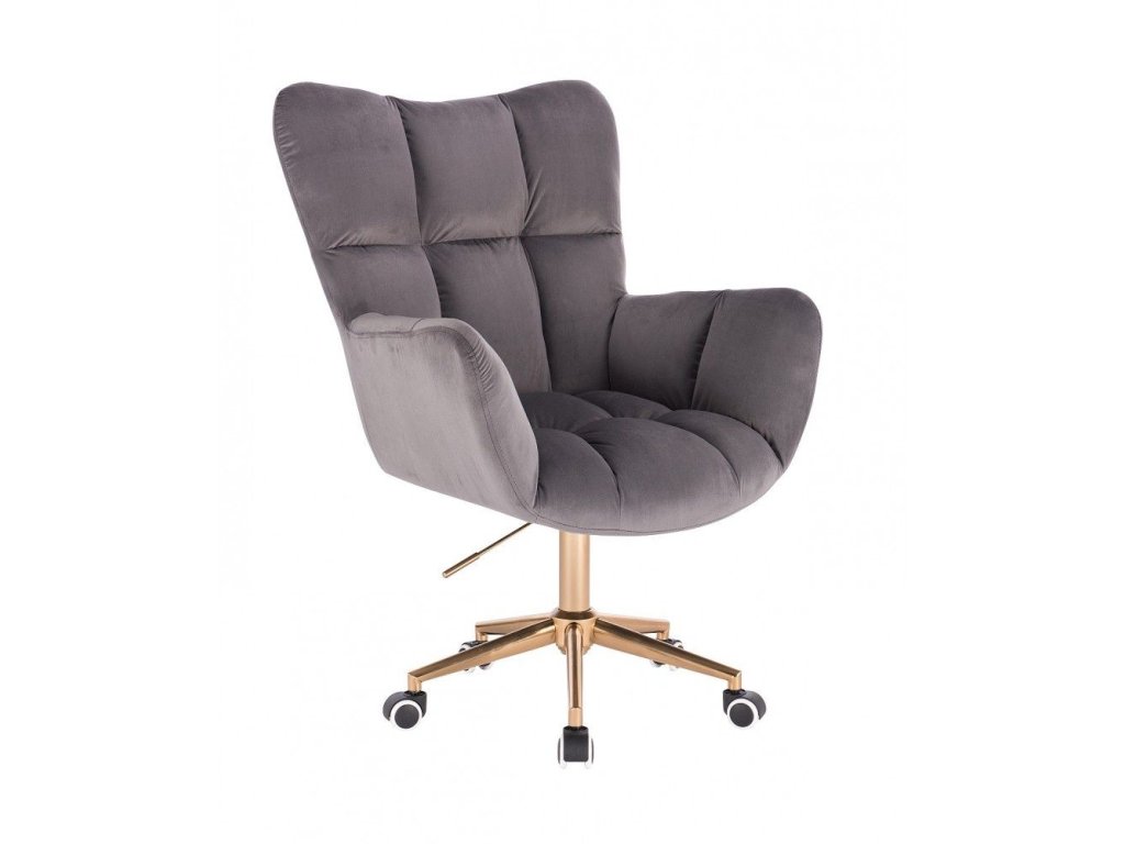 Křeslo AURORA VELUR na zlaté podstavě s kolečky - tmavě šedé