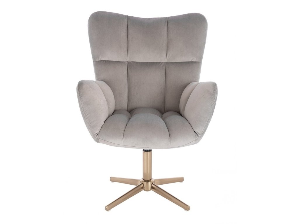 Křeslo AURORA VELUR na zlatém kříži - světle šedé
