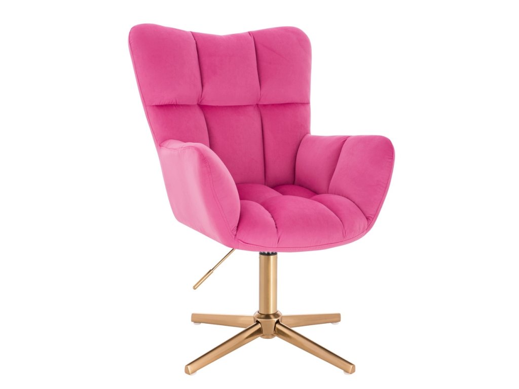 Křeslo AURORA VELUR na zlatém kříži - tmavě růžové