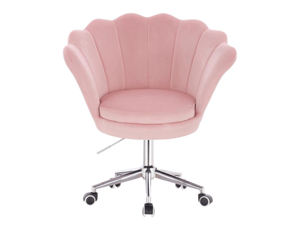 Křeslo FREY VELUR na stříbrné podstavě s kolečky - světle růžové