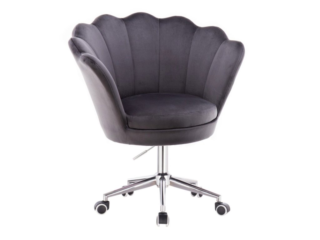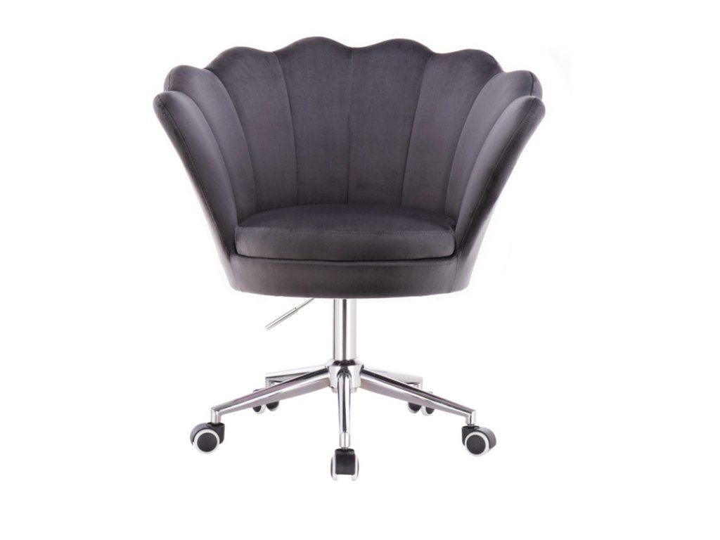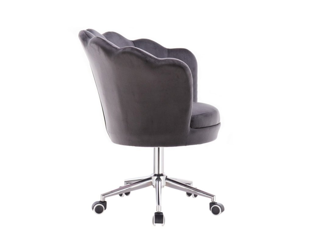 Křeslo FREY VELUR na stříbrné podstavě s kolečky - tmavě šedé