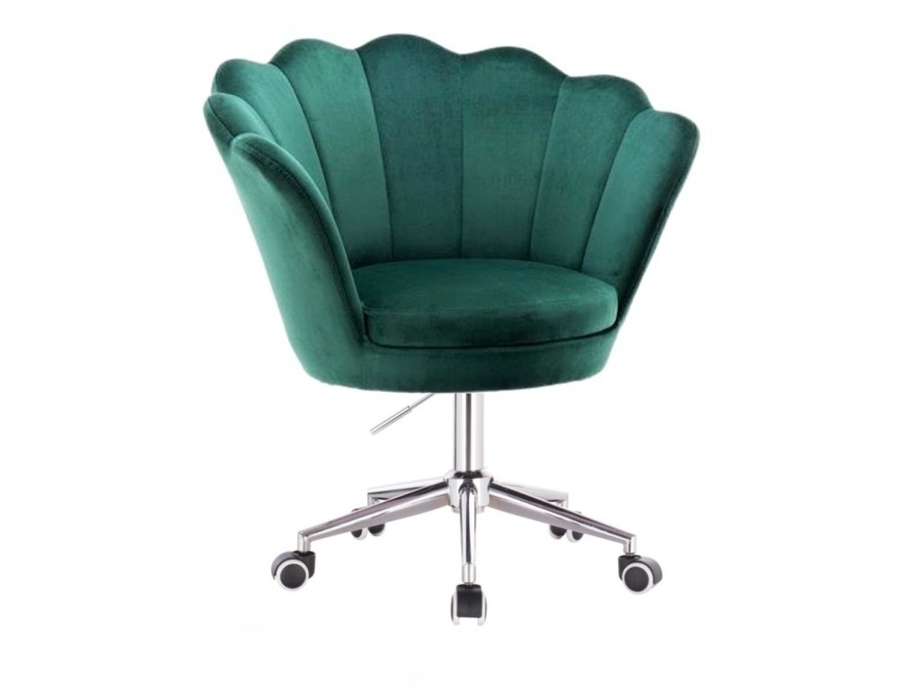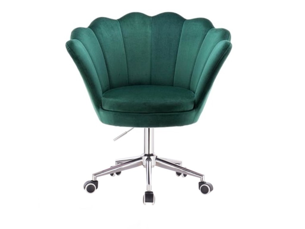 Křeslo FREY VELUR na stříbrné podstavě s kolečky - zelené