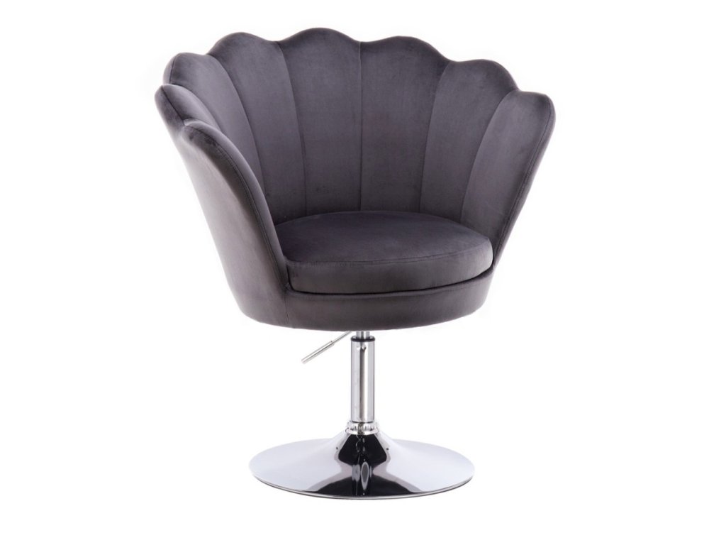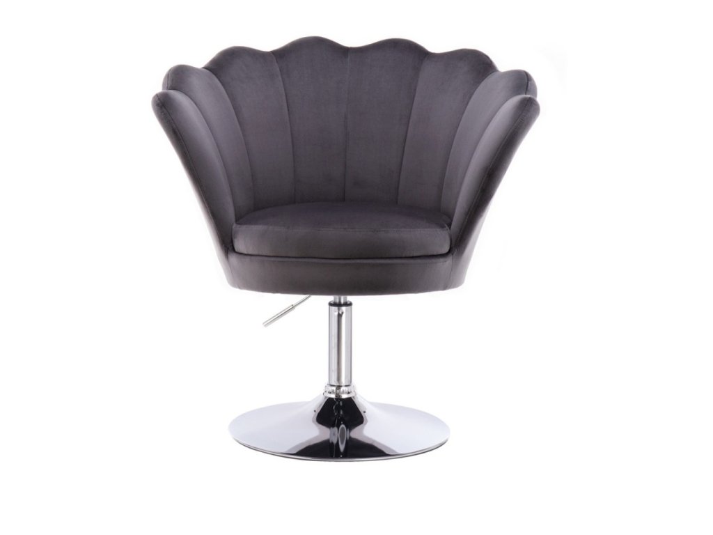 Křeslo FREY VELUR na stříbrném talíři - tmavě šedé