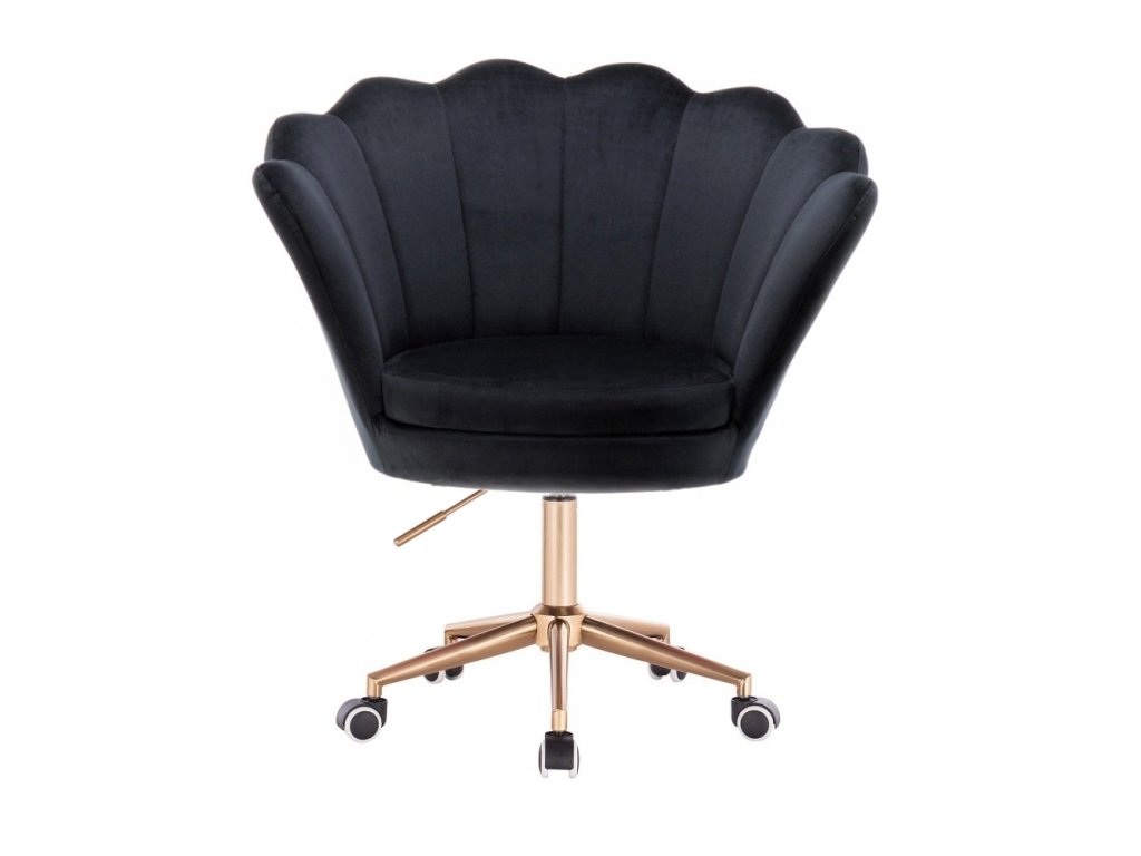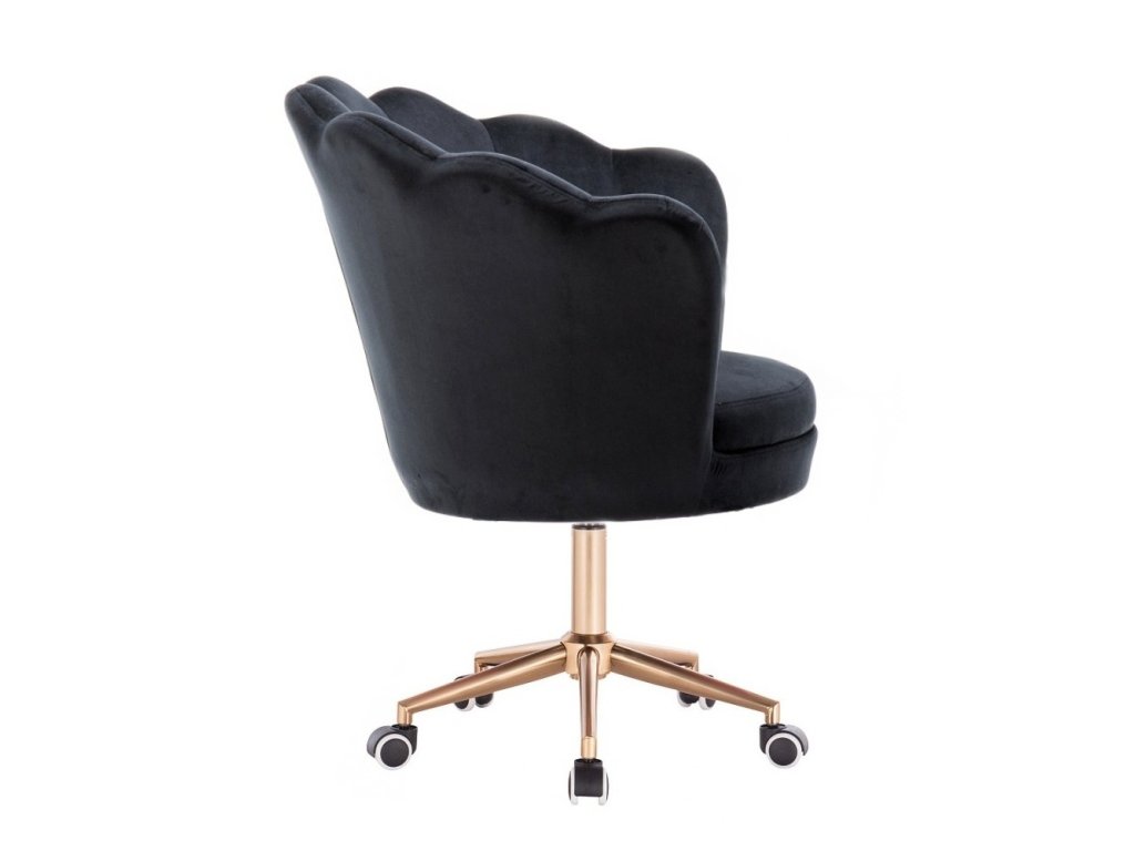 Křeslo FREY VELUR na zlaté podstavě s kolečky - černé