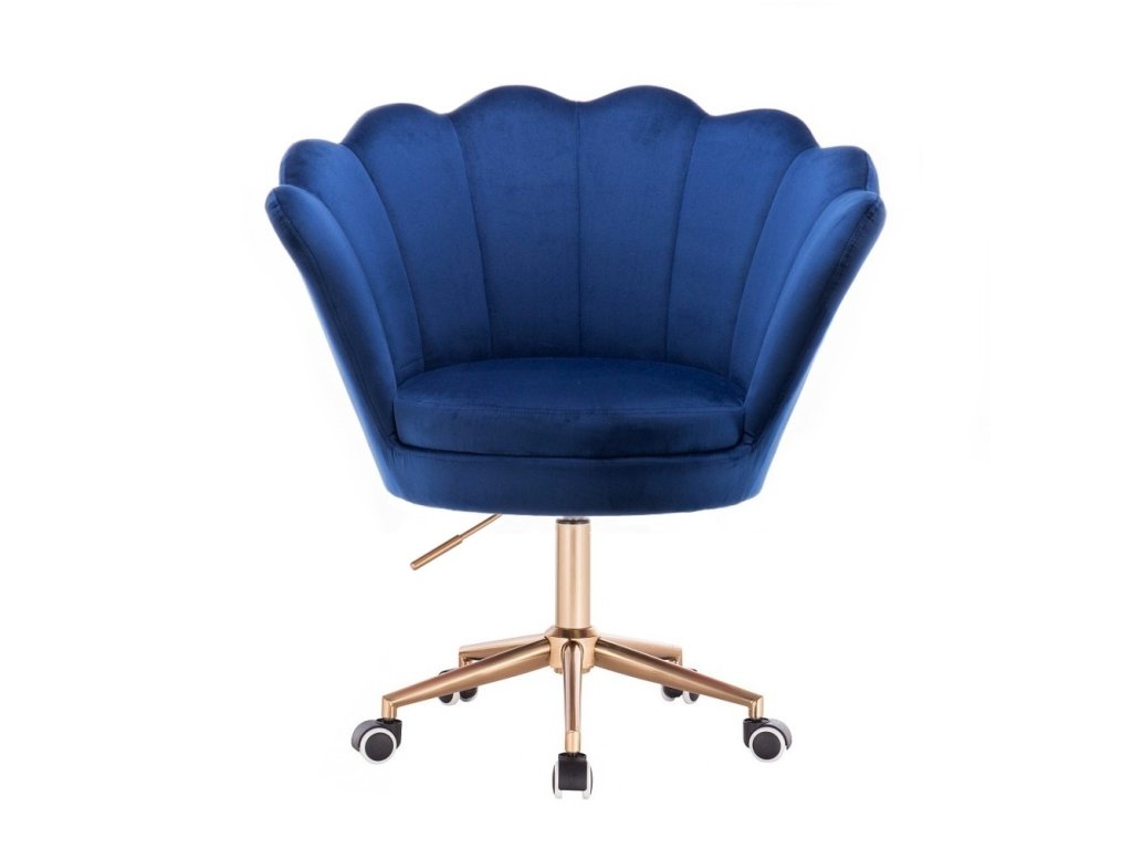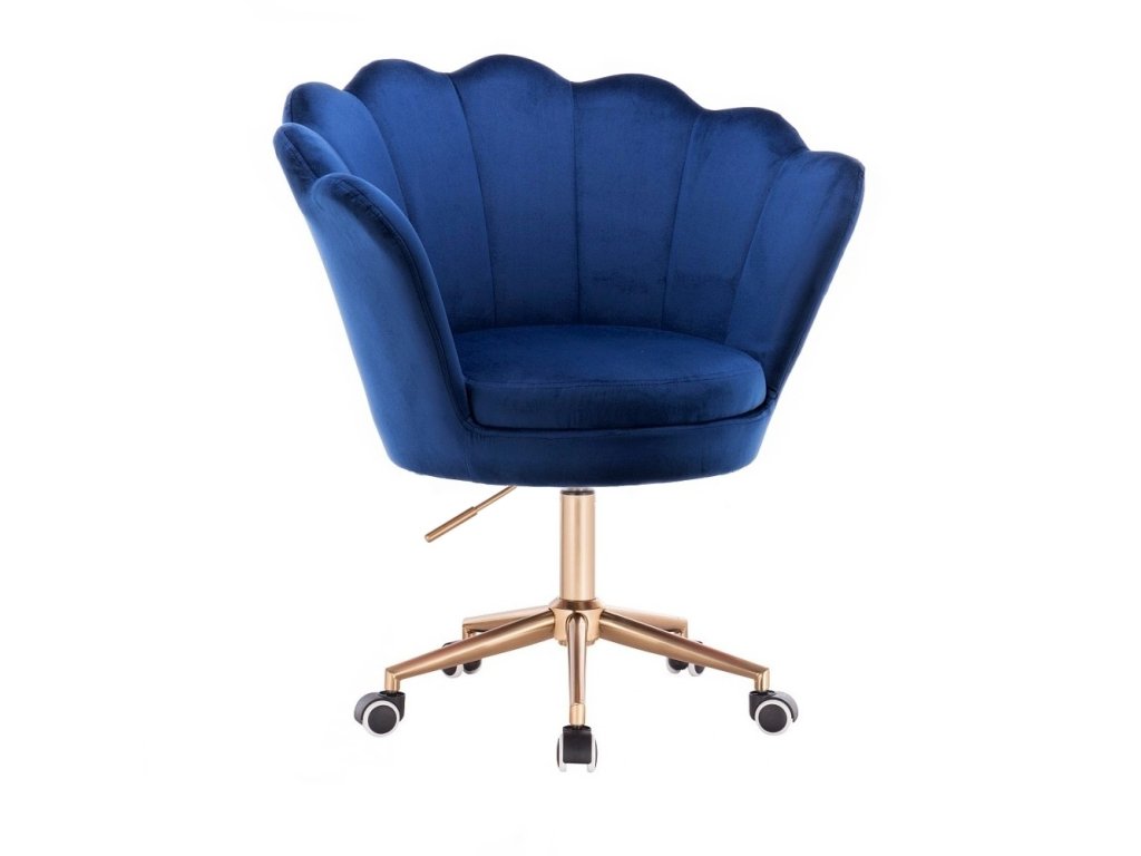 Křeslo FREY VELUR na zlaté podstavě s kolečky - modré
