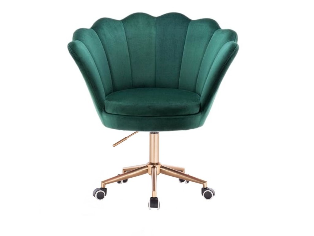 Křeslo FREY VELUR na zlaté podstavě s kolečky - zelené