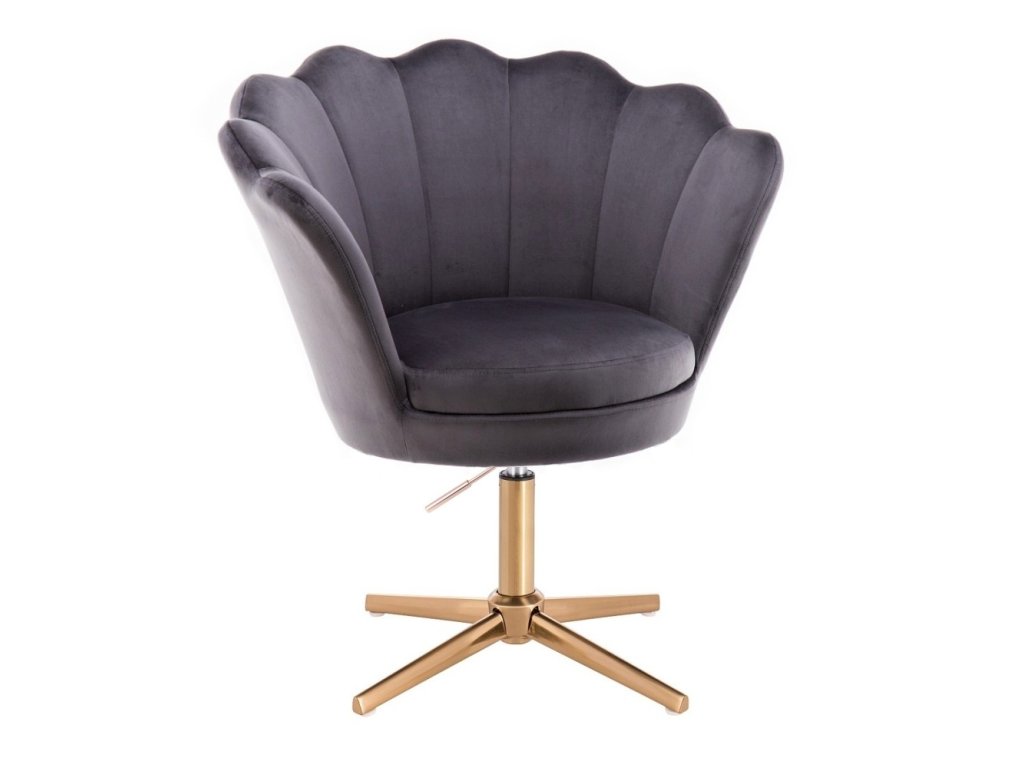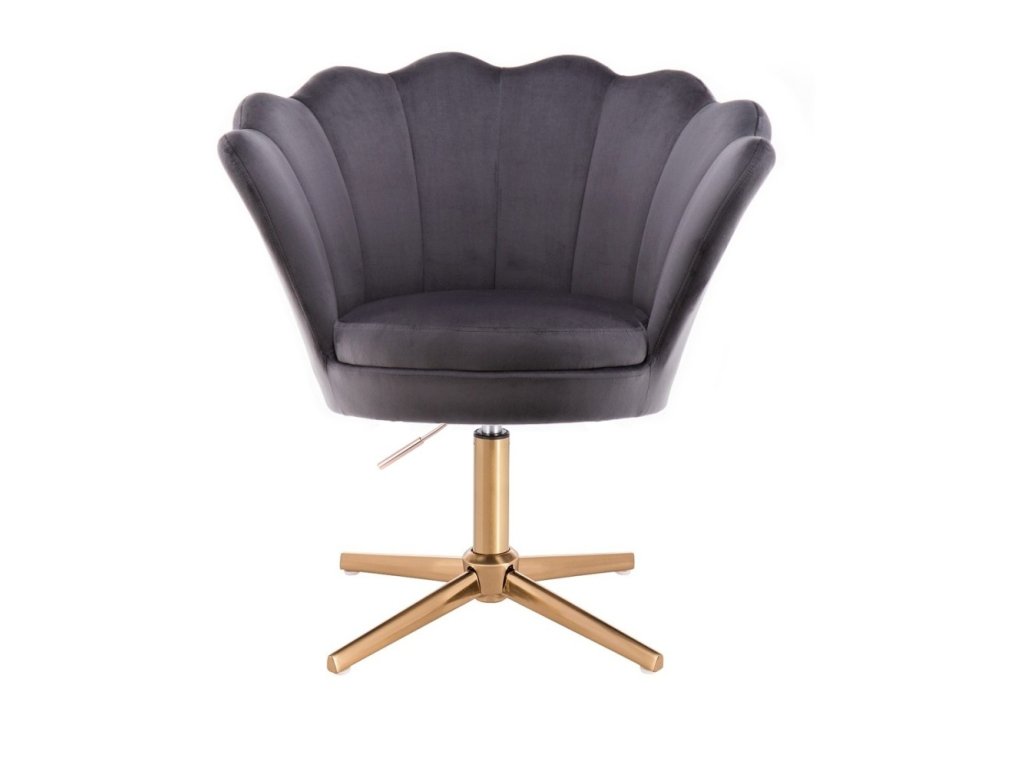 Křeslo FREY VELUR na zlatém kříži - tmavě šedé