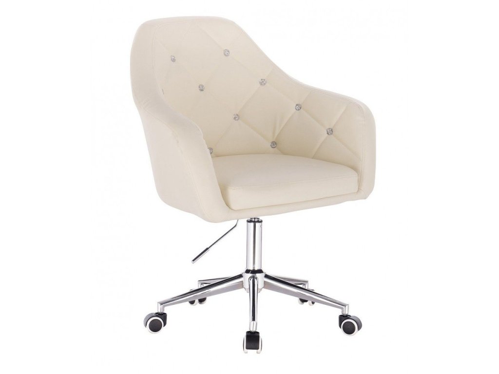 Křeslo ROMA na stříbrné podstavě s kolečky - krémové