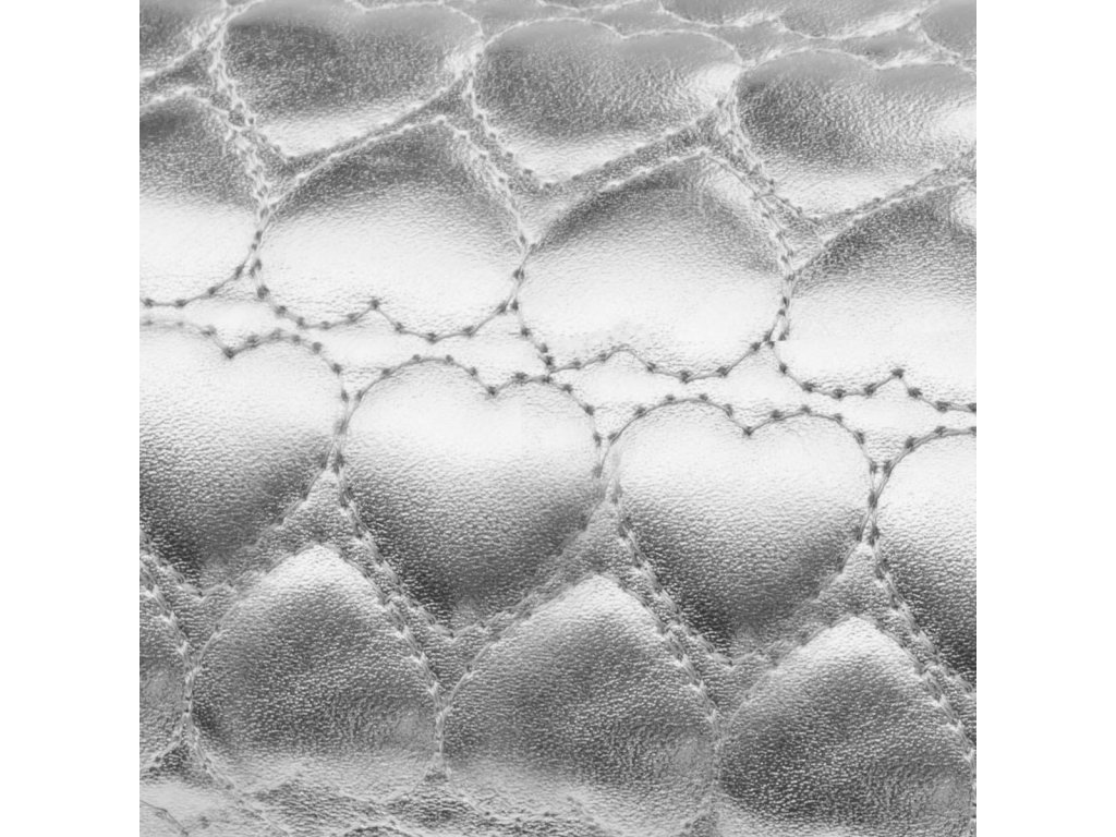 Stylový obal v barvě stříbrné je vyroben z lesklého syntetického materiálu a zdoben prošívanými srdíčky.
