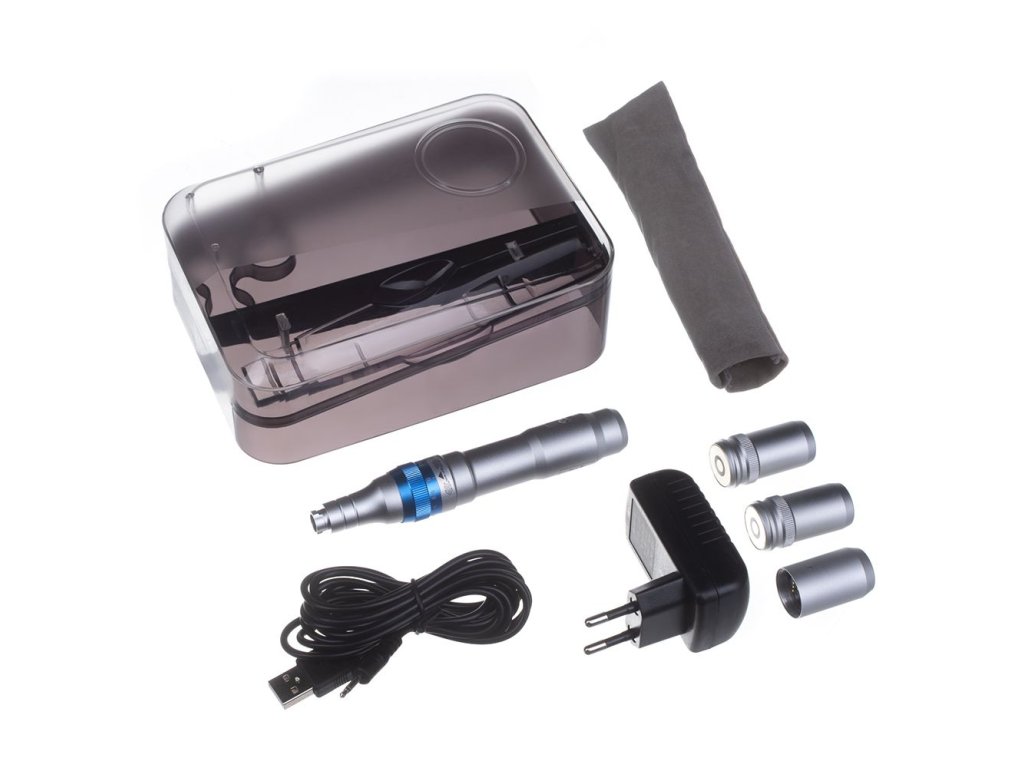 Mikrojehličkové pero A6 Ultima zařízení Cartridge 12 (ocelové jehly) 2 ks 2 lithium-iontové baterie (500 mAh) 1 vodičový modul, Napájecí kabel, Kabelová skříň
