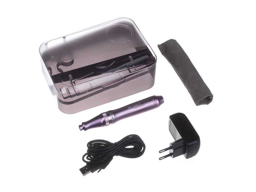 Sada obsahuje: Mikrojehličkové pero M7-W bezdrátové, patrona zařízení 12 (ocelové jehly) 2 ks . Napájecí kabel. Kabelový box