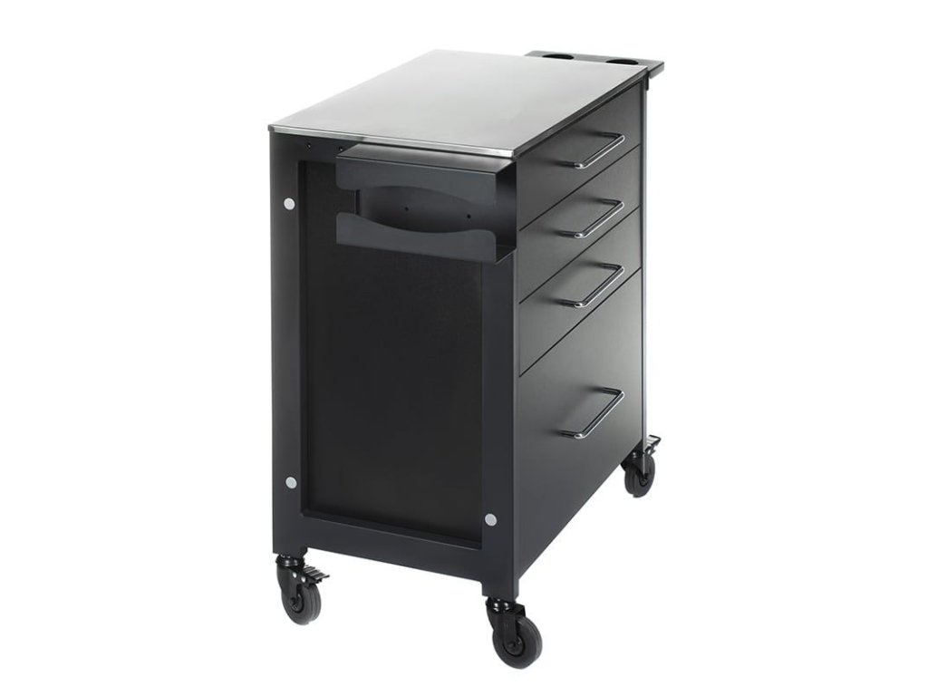 Mobilní pracovní stůl pro skladování tetovacího zařízení. Díky pevné ocelové konstrukci zaručuje dlouhou životnost.