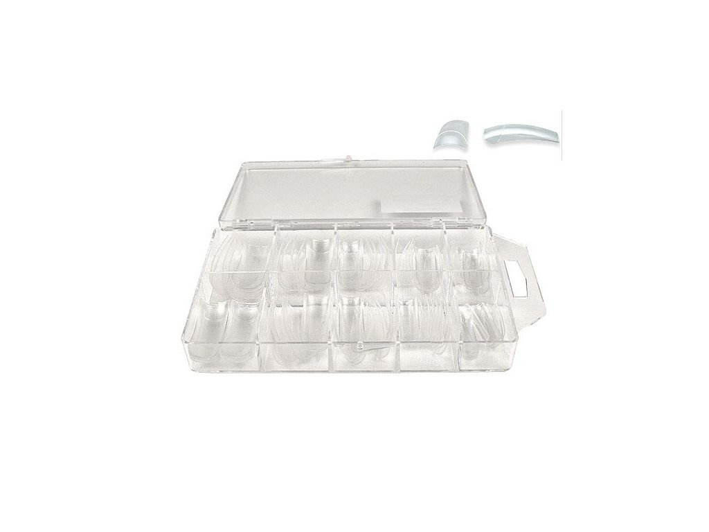 Nehtové tipy, umělé tipy čiré, v praktické plastové krabičce.