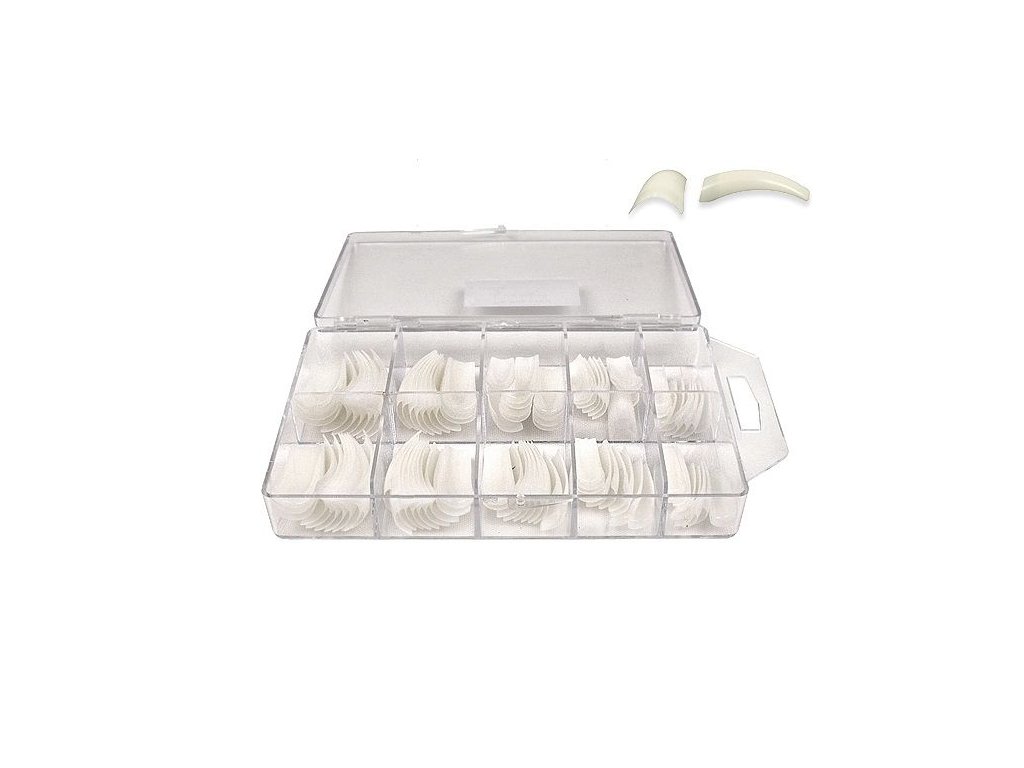 Nehtové tipy, umělé tipy přírodní, v praktické plastové krabičce.
