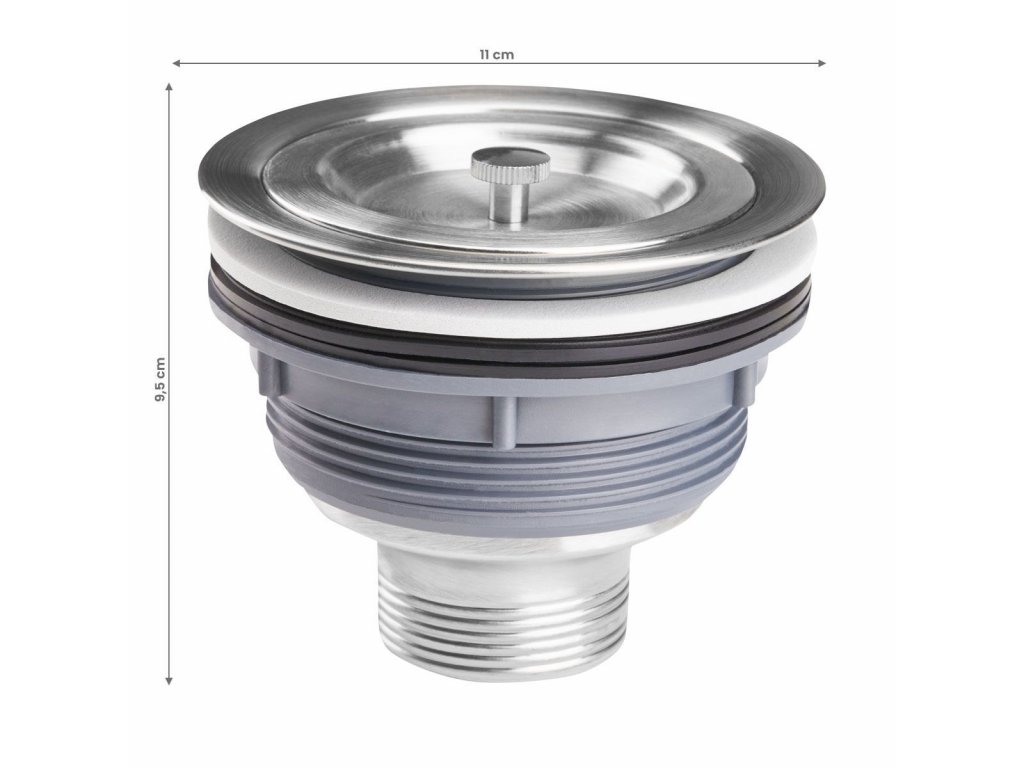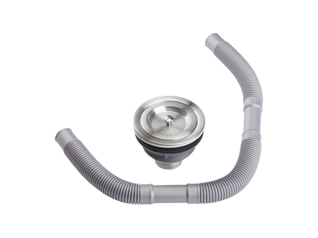Sada obsahuje kovový odtok + sítko + vypouštěcí zátku + těsnění + vypouštěcí trubku.