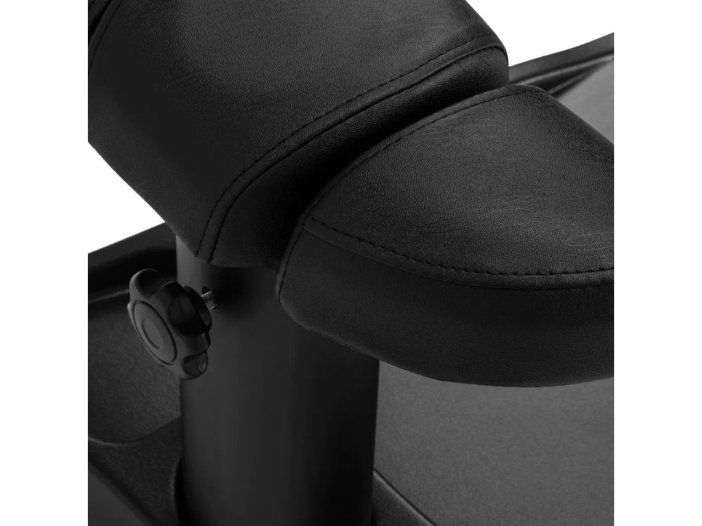 Manuální nastavení výšky až do 20 cm, čalounění ze syntetické kůže odolné proti vlhkosti a stabilní gumová kolečka s aretačním mechanismem zajišťují pohodlí, mobilitu a dobře organizované pracovní místo.