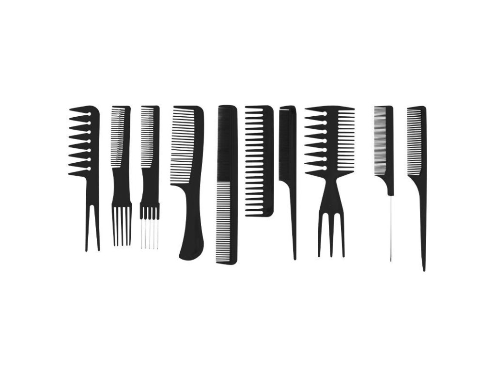 Sada profesionálních a nezbytných pomůcek každého kadeřníka se skládá z 10 jedinečných hřebenů pro česání a styling vlasů.