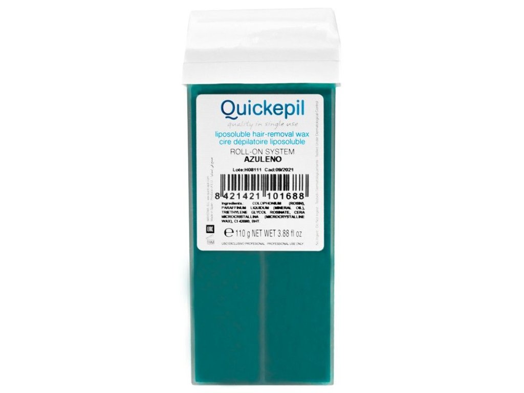 Vosk QUICKEPIL roll-on je speciálně navržený pro kosmetičky, které hledají vynikající výsledky. Díky speciální receptuře vosk pomalu chladne, pevně drží a je lehko odstranitelný. Obsahuje azulen, který má zklidňující a protizánětlivé účinky a je ideální pro citlivou pokožku, náchylnou k podráždění. Vosk je určený na všechny druhy pokožky a má antiseptické a hydratační vlastnosti