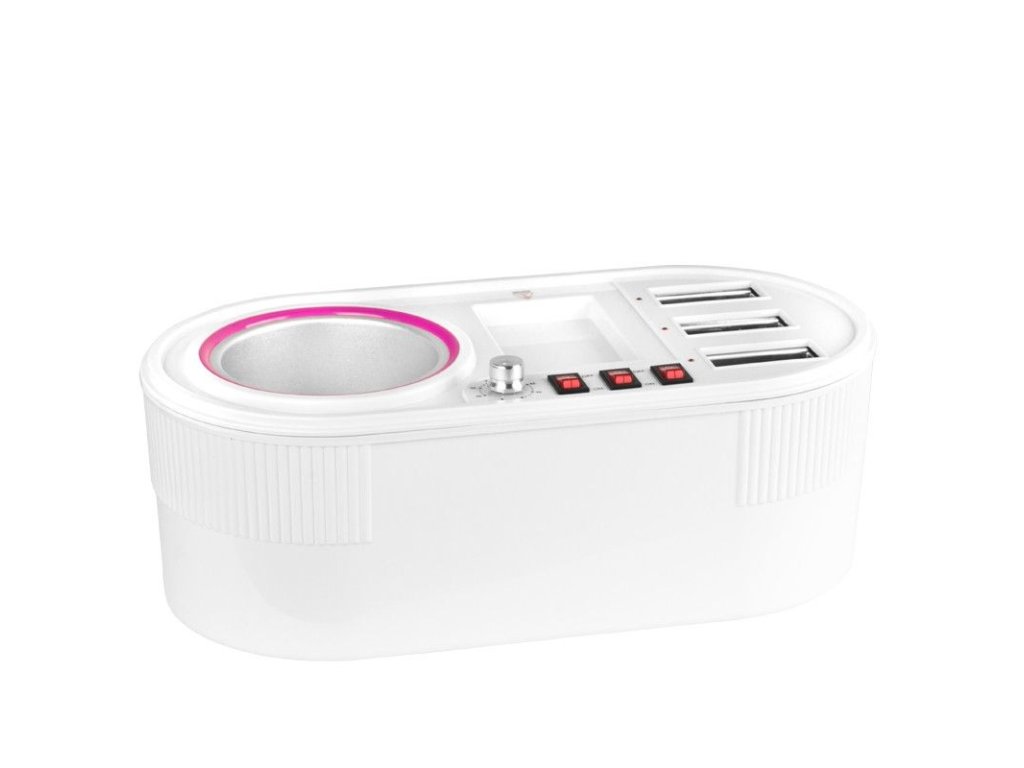Multifunkční zařízení pro ohřev depilačních voskových kazet a plechovek. Bezpečný a snadno ovladatelný s krátkou dobou zahřívání. Doporučujeme pro profesionální použití. Je vhodný pro každý typ pokožky. Současně může ohřívat tři standartní kazety (kazety s válečkem o objemu 110 g a 100 ml) a také vosk v plechovce o objemu 400 nebo 500 ml.