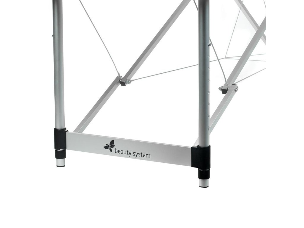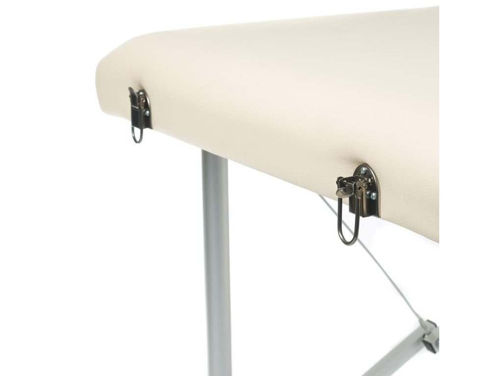 Masážní stůl je vyroben z odolného čalounění a pěny, konstrukce hliníková. Snadno se udržuje v čistotě díky potahu z eko kůže.