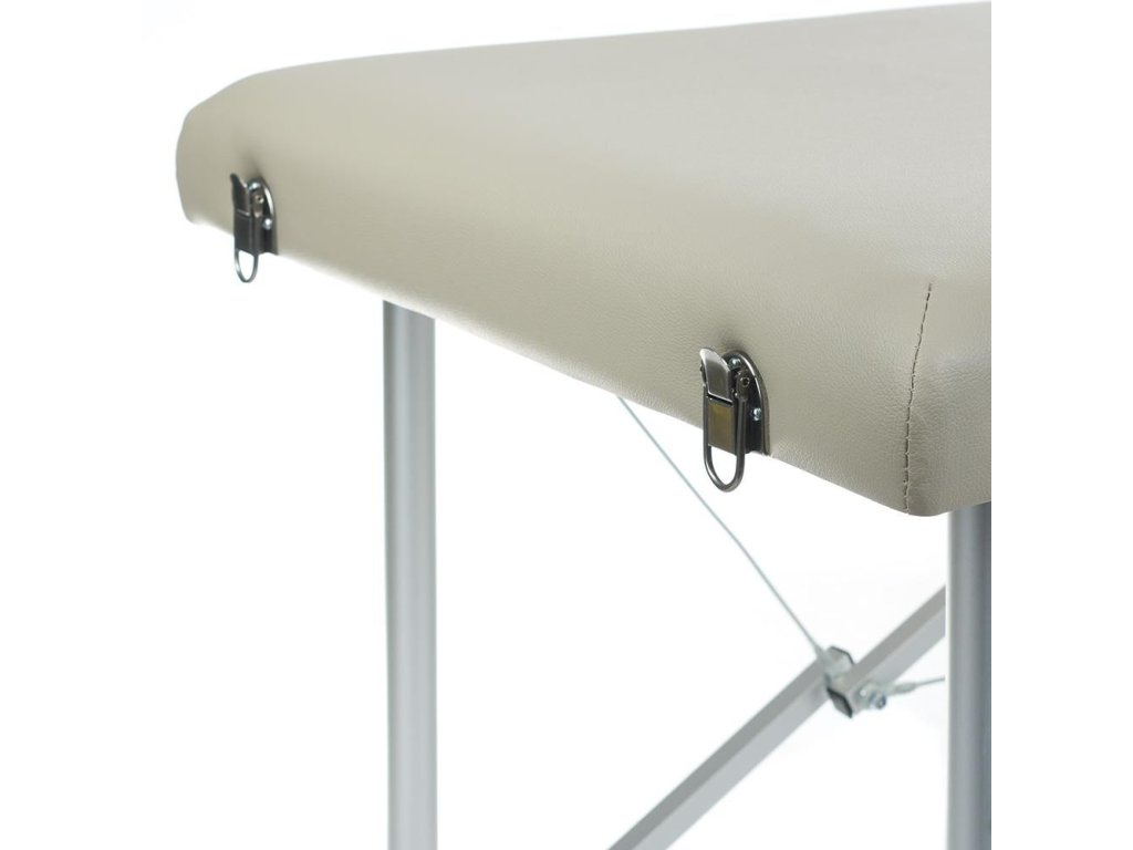 Masážní stůl je vyroben z odolného čalounění a pěny, konstrukce hliníková. Snadno se udržuje v čistotě díky potahu z eko kůže.