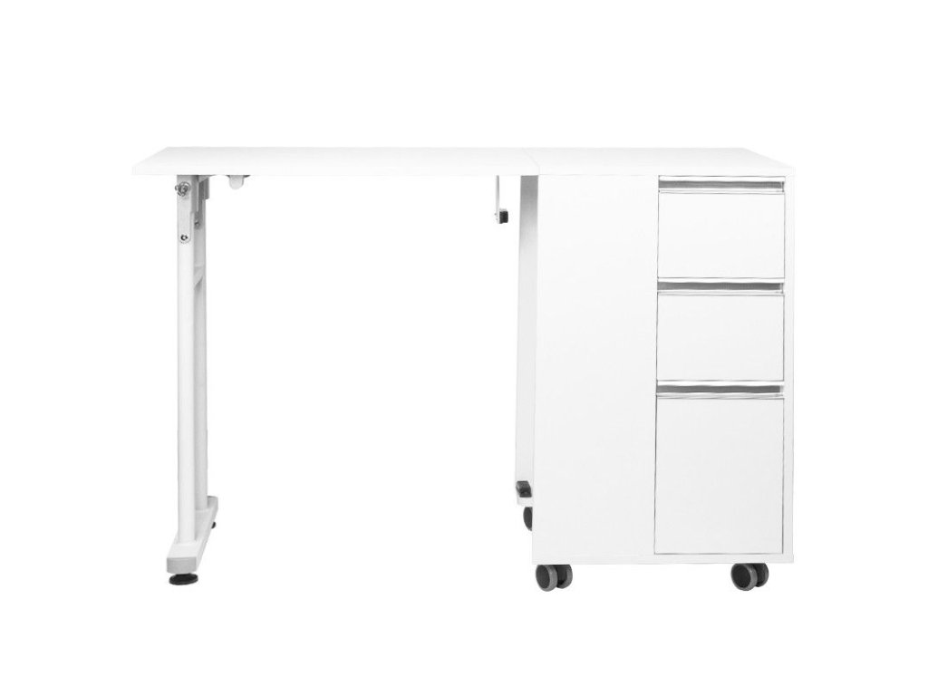 Skládací stolek 2038 bílý Skládací kosmetický stůl, ideální do malých místností či kanceláří. Je vybaven třemi zásuvkami pro uložení potřebných pomůcek a opatřen kolečky, takže ho můžete snadno dle potřeby přemístit a mít tak vše potřebné stále po ruce.Diskuze