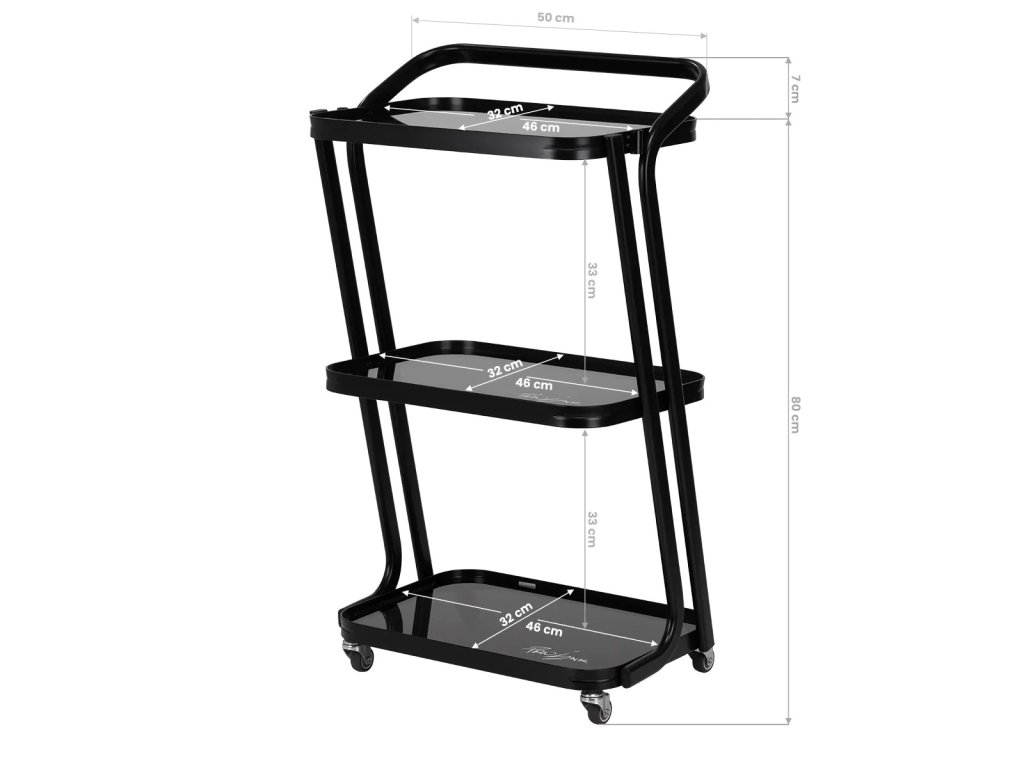 Tři skleněné police umožňují pohodlné uložení a organizaci produktů a nástrojů potřebných k tetování.