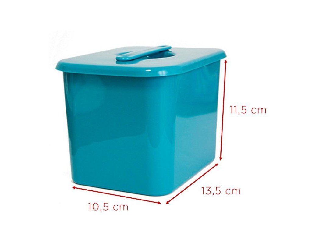 Kapacita 1,3l, tyrkysová barva.