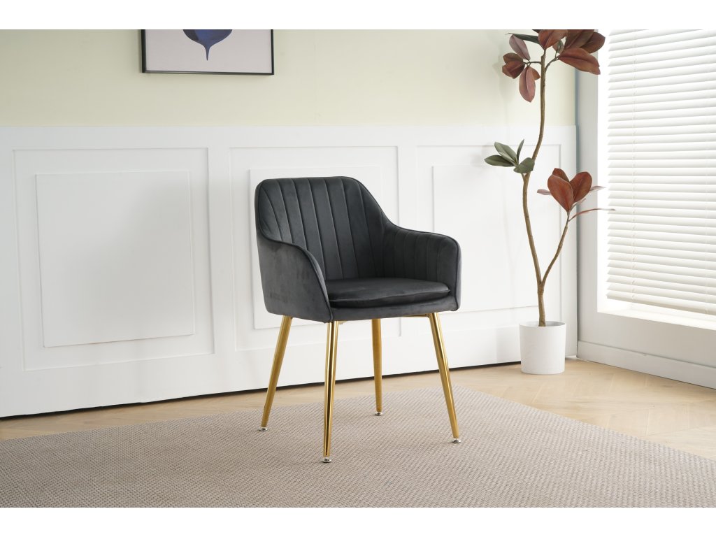 Krásná velurová židle je velmi pohodlná díky širokému sedadlu a opěrkám rukou.