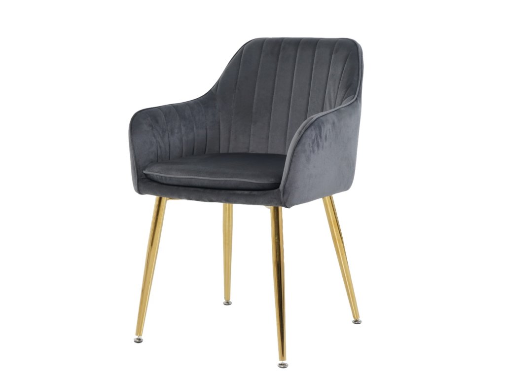 Krásná velurová židle je velmi pohodlná díky širokému sedadlu a opěrkám rukou.