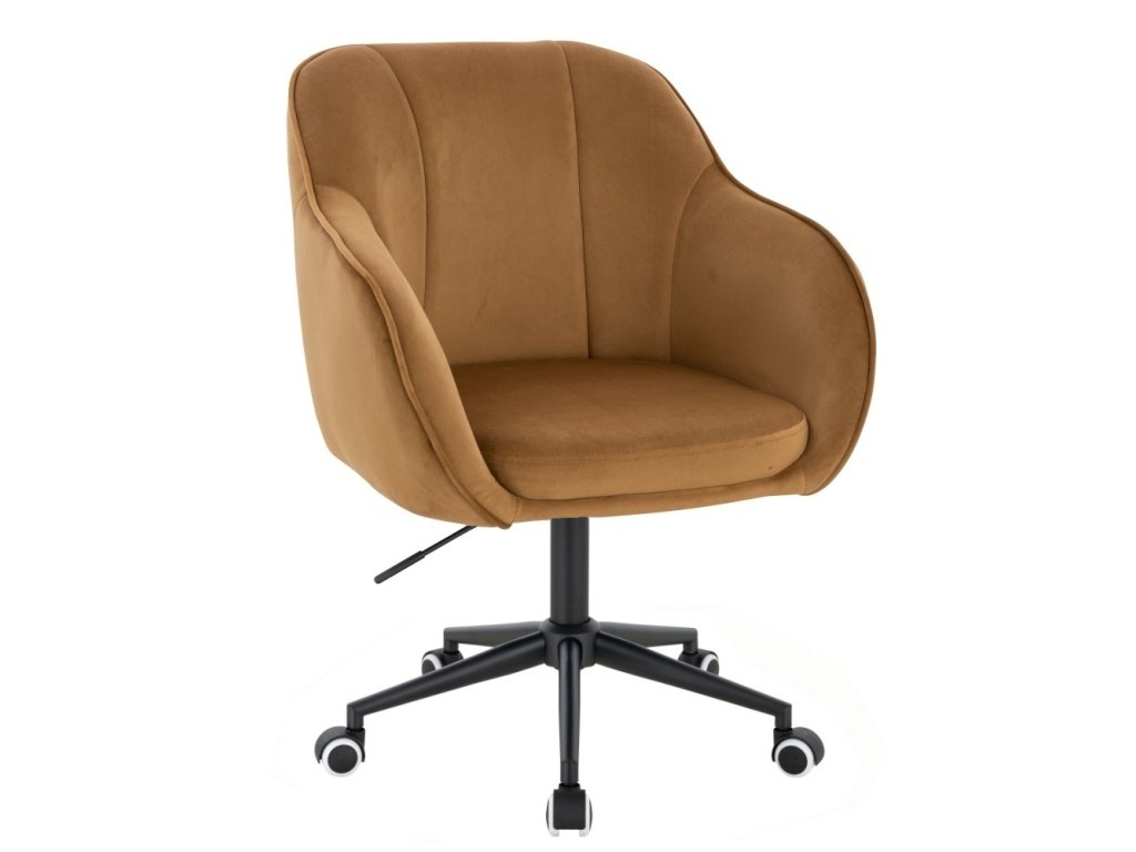 Židle AVOLA VELUR na černé podstavě s kolečky - medová