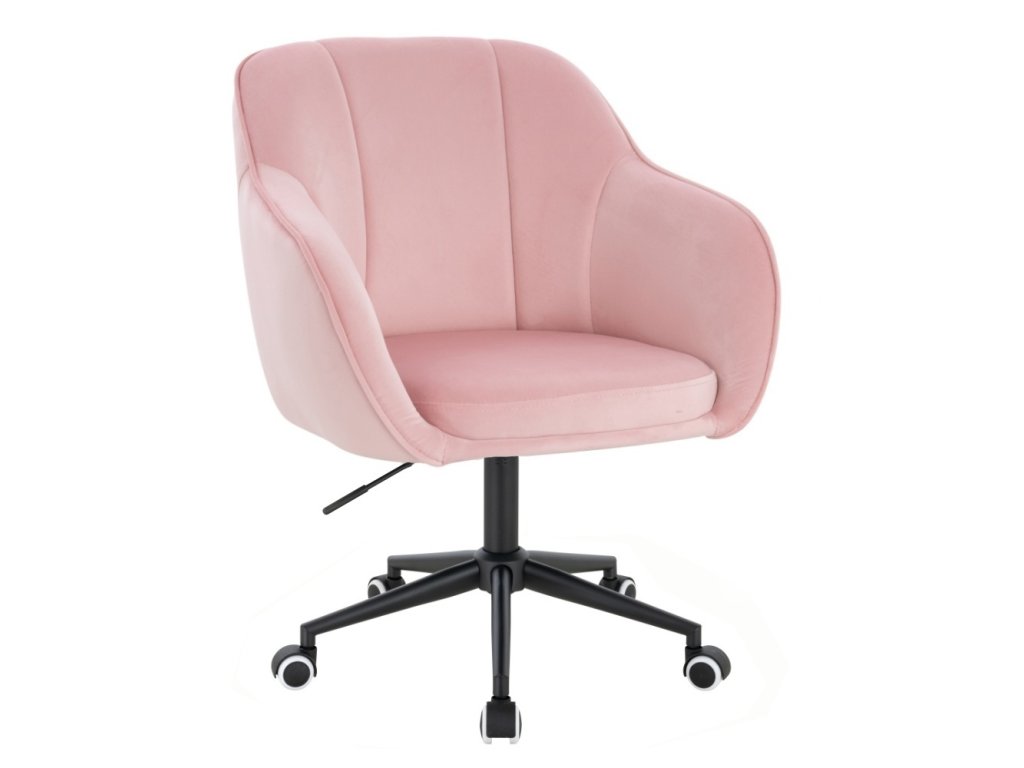 Židle AVOLA VELUR na černé podstavě s kolečky - světle růžová