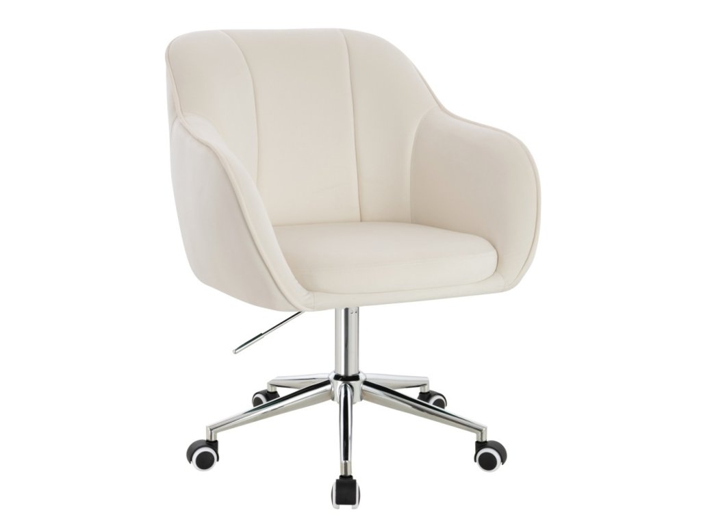 Židle AVOLA VELUR na stříbrné podstavě s kolečky - bílá