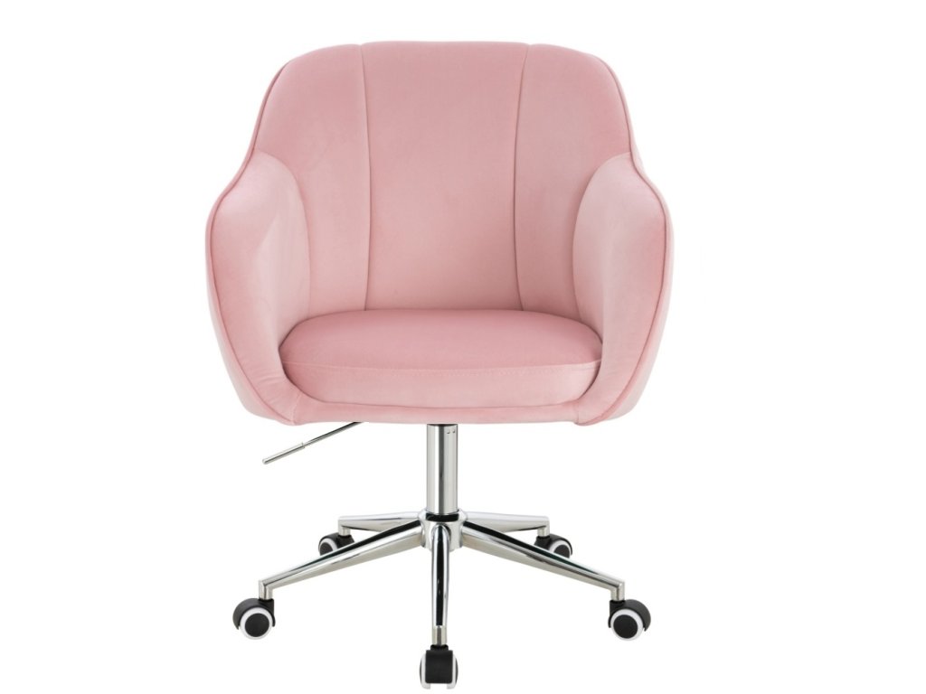Židle AVOLA VELUR na stříbrné podstavě s kolečky - světle růžová
