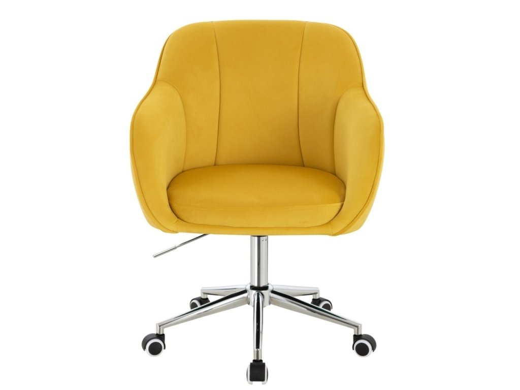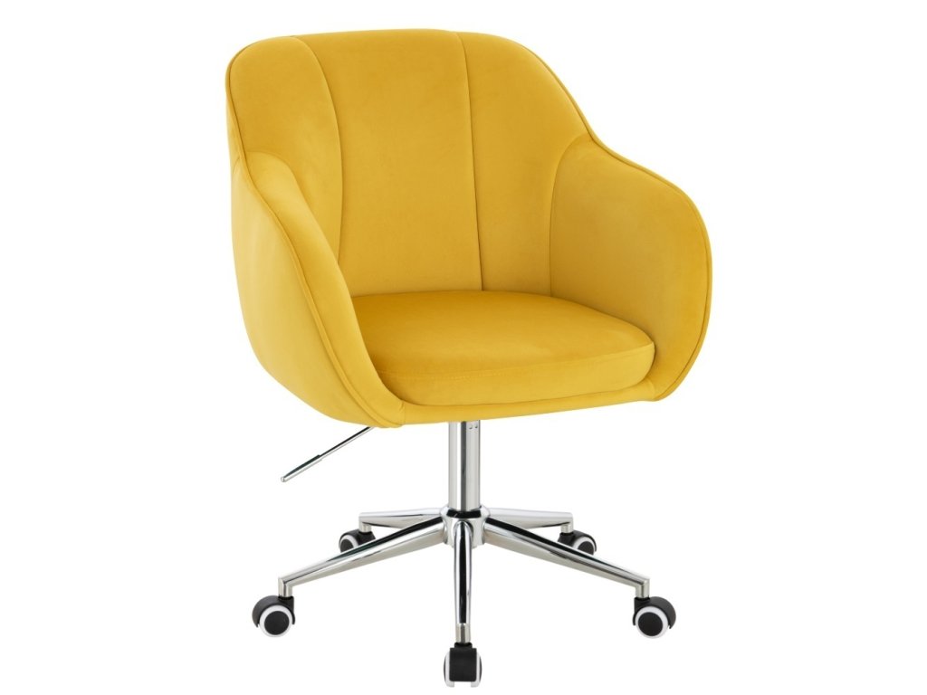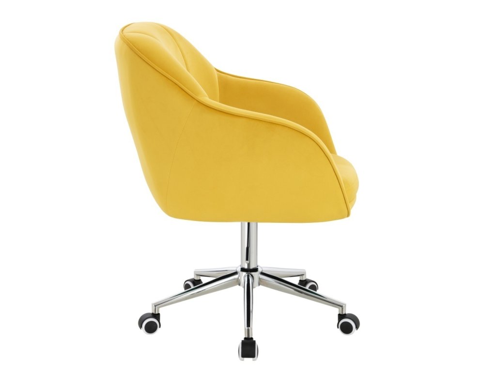 Židle AVOLA VELUR na stříbrné podstavě s kolečky - žlutá