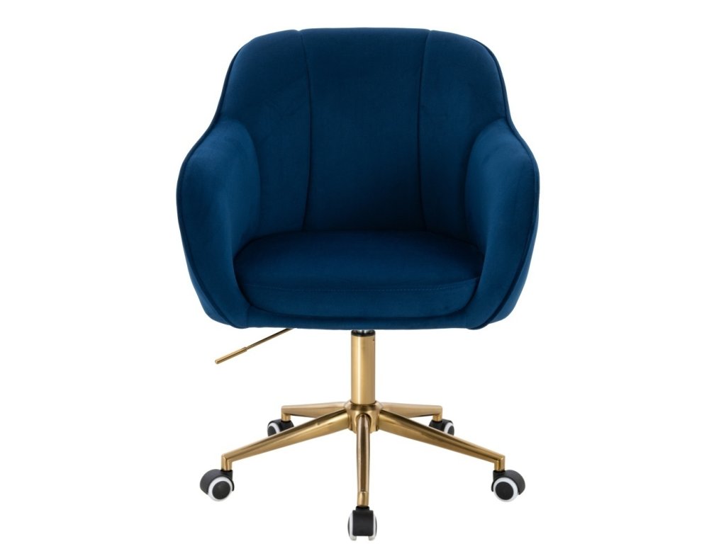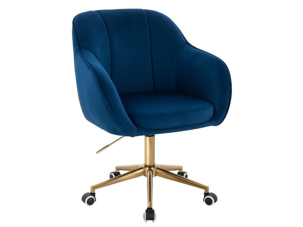 Židle AVOLA VELUR na zlaté podstavě s kolečky - modrá