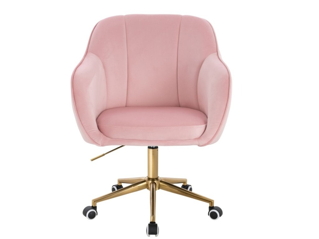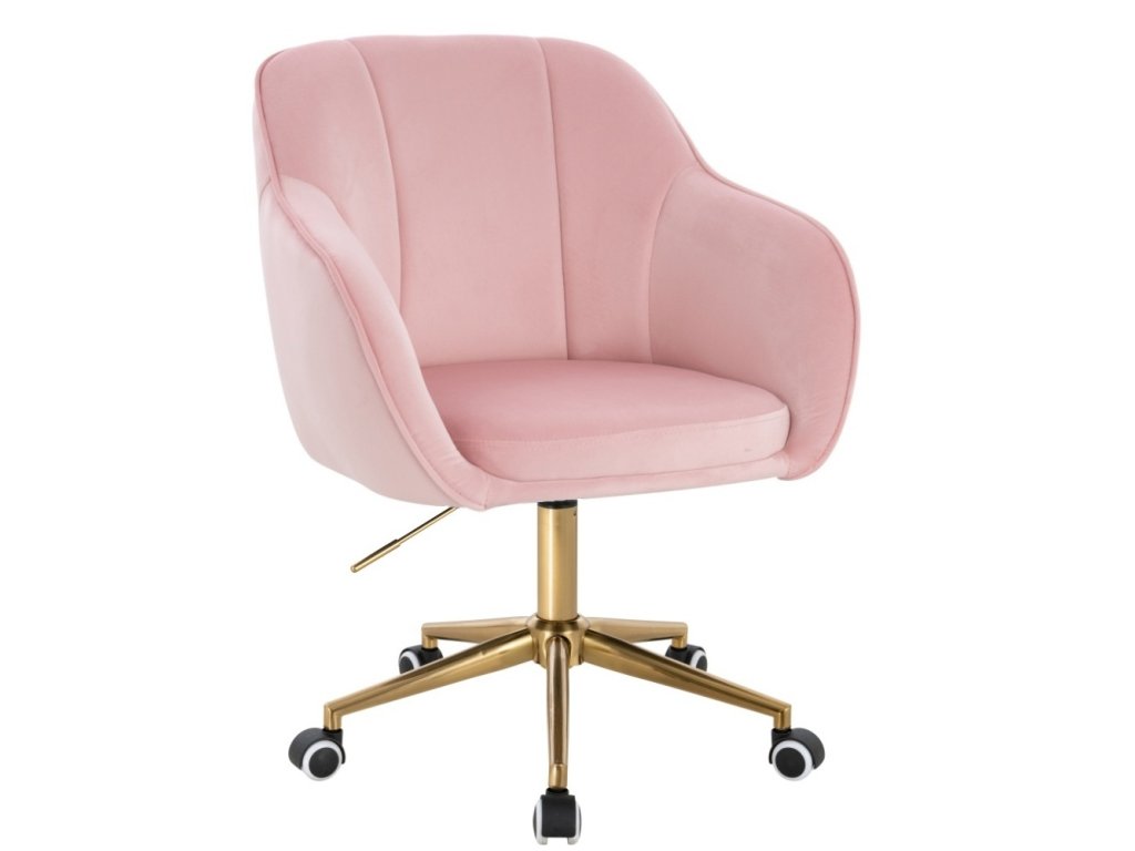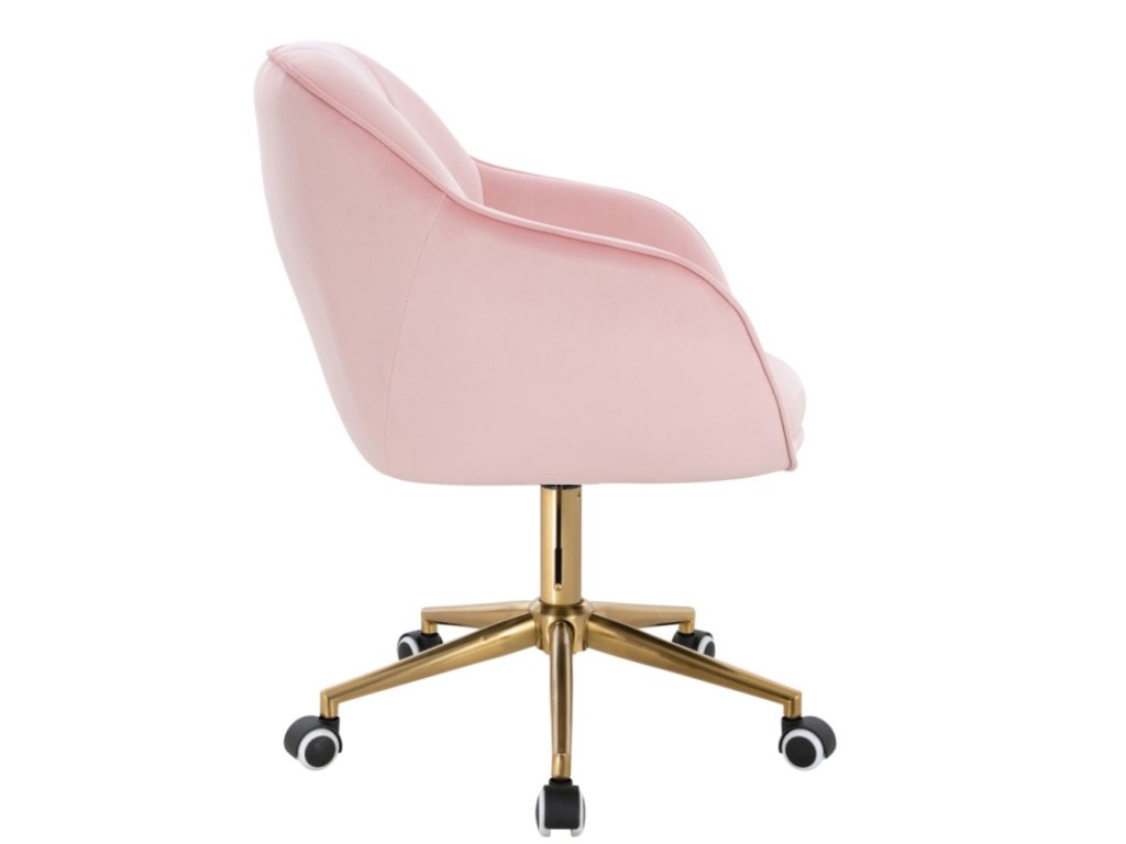 Židle AVOLA VELUR na zlaté podstavě s kolečky - světle růžová