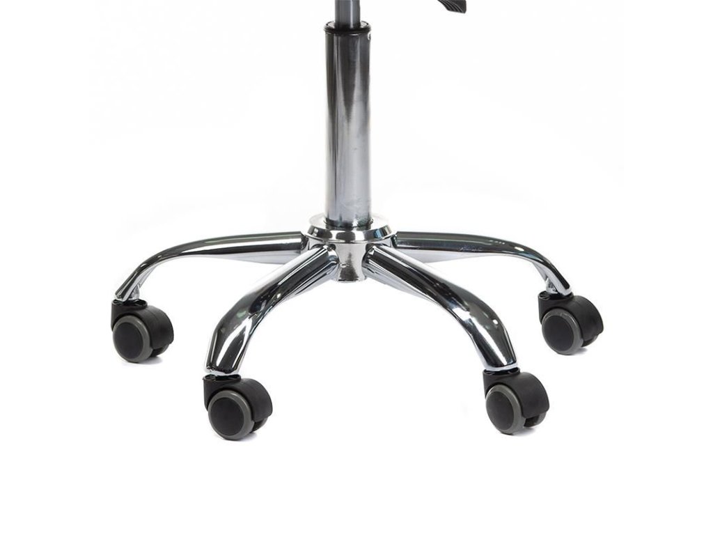 Noha a základna v chromu. Základna opatřena 5 kolečky, která umožňují snadnou manipulaci