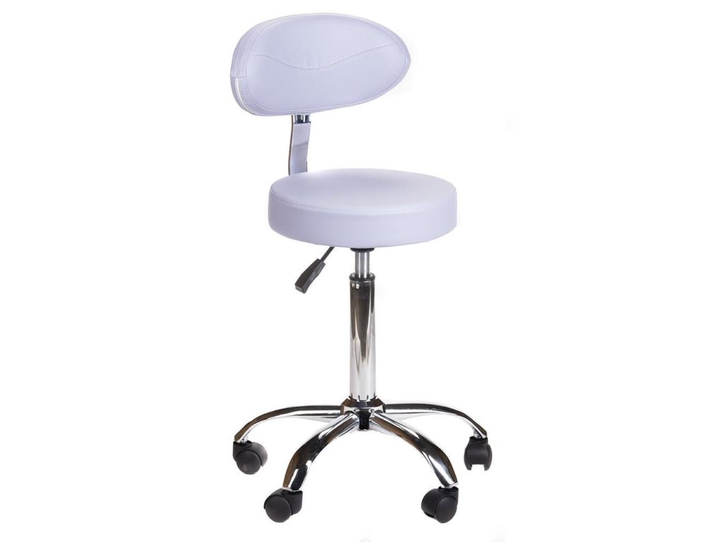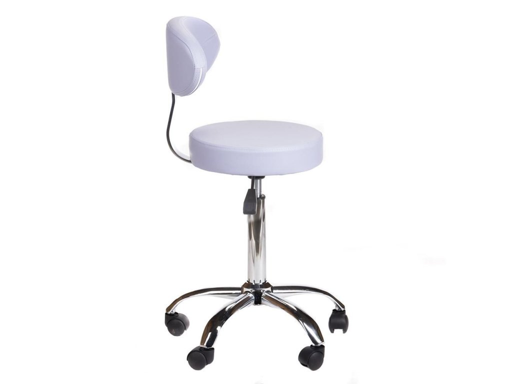 Kosmetická židle BERN s opěrátkem na stříbrné podstavě s kolečky