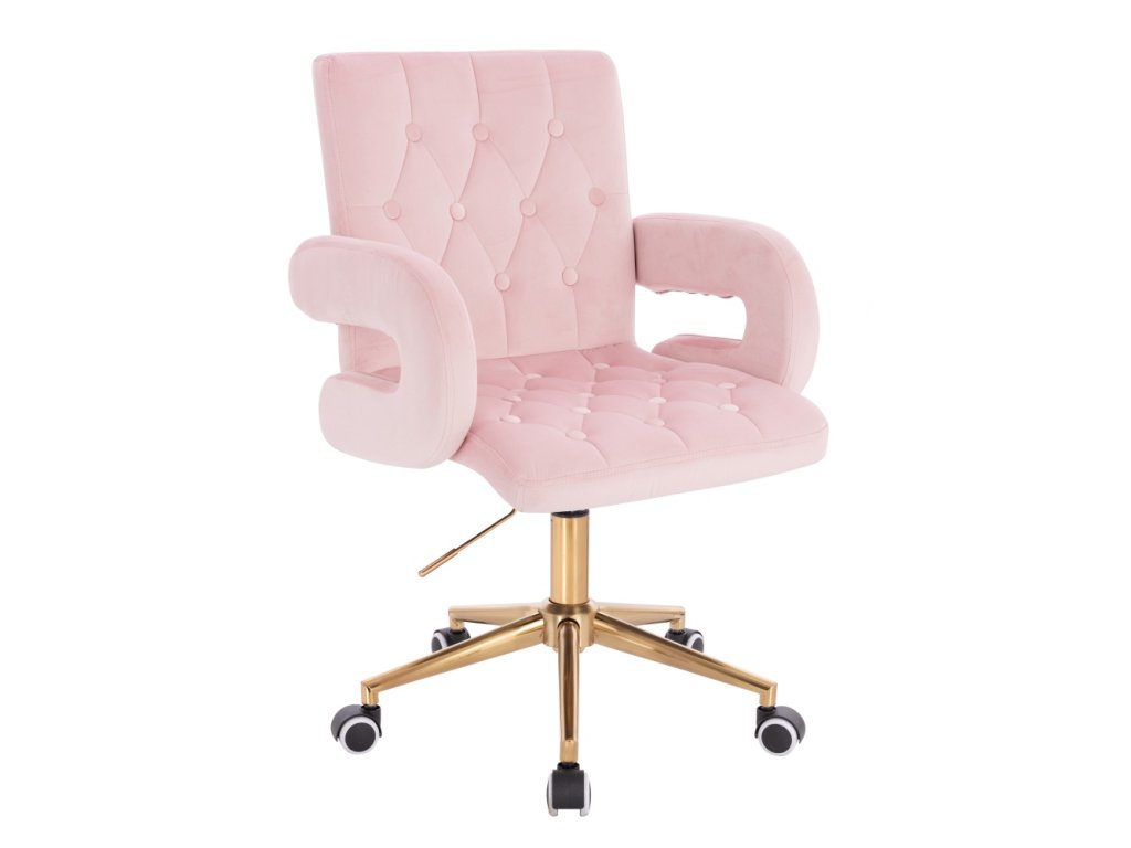 Židle BOSTON VELUR na zlaté podstavě s kolečky - světle růžová