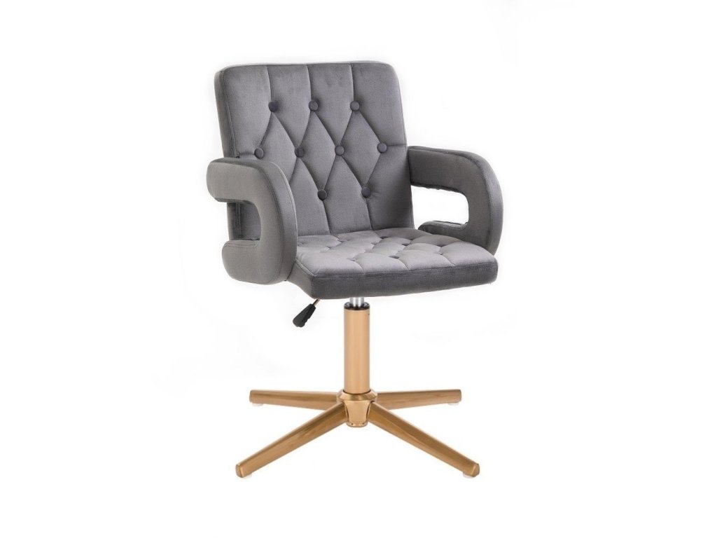 Židle BOSTON VELUR na zlatém kříži - šedá