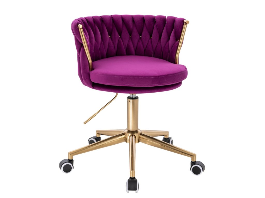 Židle LYON VELUR na zlaté podstavě s kolečky - fuchsie