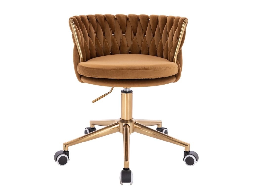 Židle LYON VELUR na zlaté podstavě s kolečky - medová
